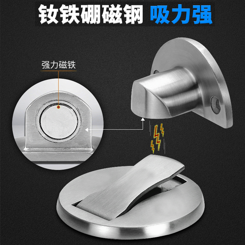 Door suction ground suction 304 stainless steel invisible door bumper STRONG MAGNETIC DOOR SHIELD FLOOR TILE MAKEUP ROOM SILENT SUCTION DOOR STOPPER ANTICOLLISTER