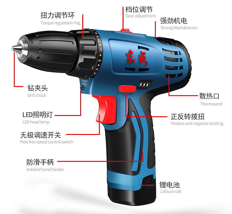 Dongcheng rechargeable electric drill DCJZ09-10Z electric screw screwdriver starter home 12V wireless lithium electric drill