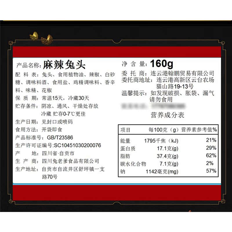 (Brand Ex-gratia) YouChapo spicy and spicy cold eating rabbit head 160g snacks open bag ready-to-eat meal meat