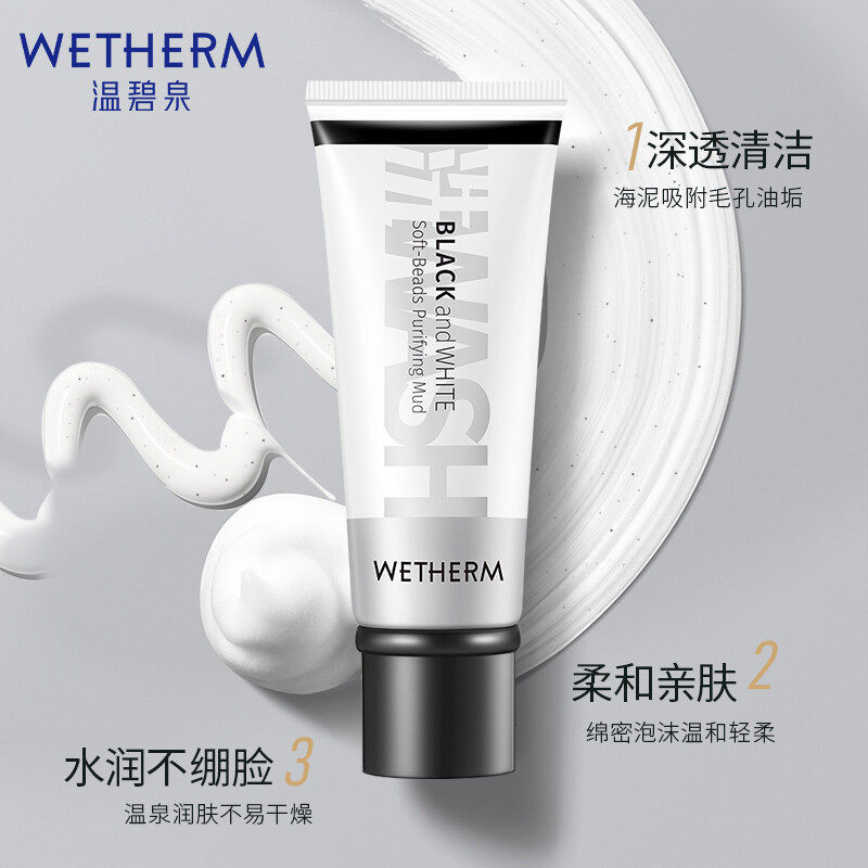 Wen Biquan black and white soft beads purification mud oil control to blackhead scrub facial cleanser men and women flagship store official website