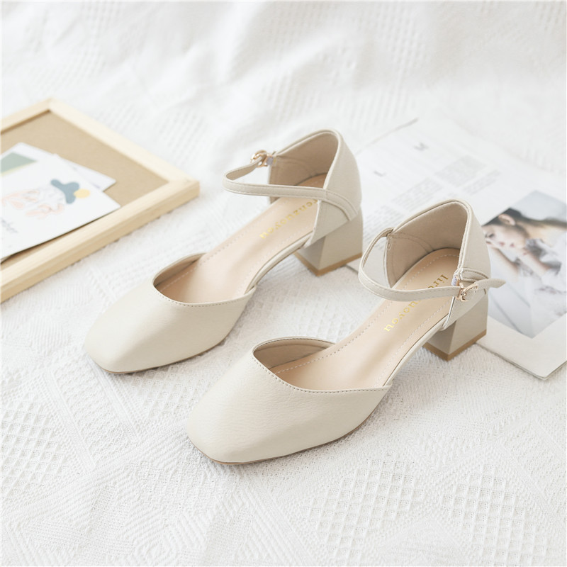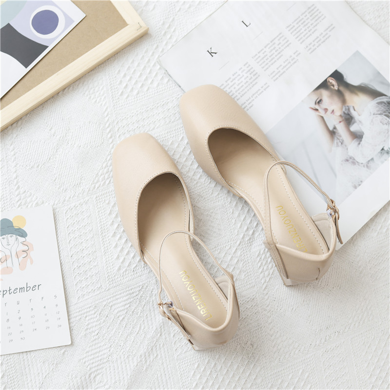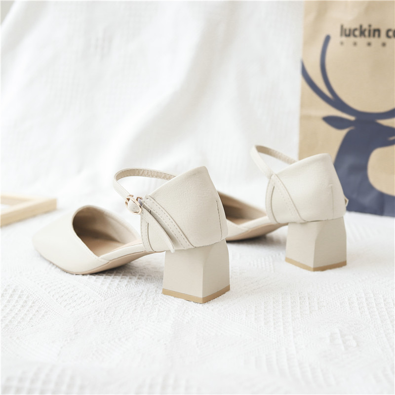 High heels women's thick heels 2022 new style matching skirt design small summer Baotou Roman fairy sandals middle heel