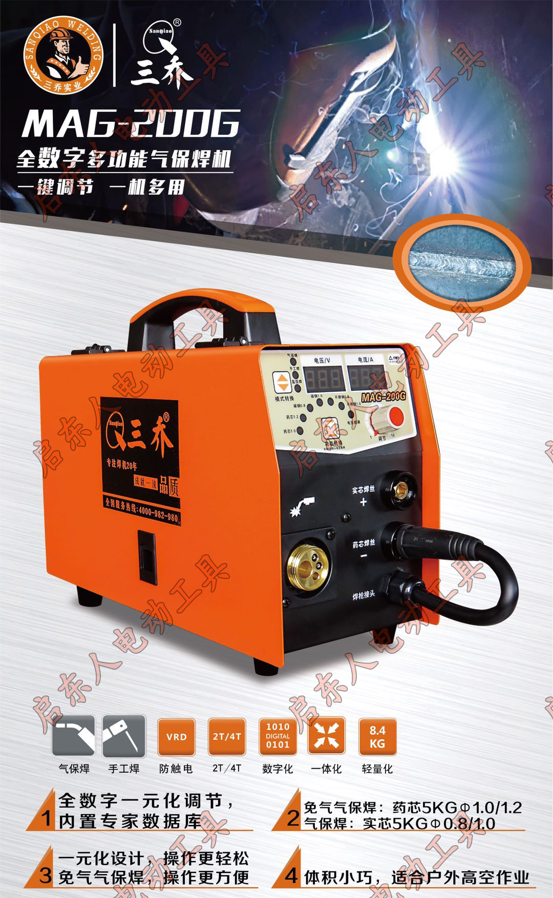 The connecting line of the two-piece two-guarantee welding machine is 10 meters MAG-200G single-phase electric 220V multi-purpose two-guarantee welding machine MAG-200GMA dual-electric multi-purpose two-guarantee welding machine MAG