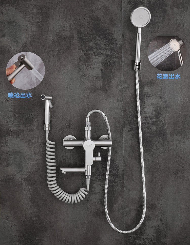 304 stainless steel shower faucet hot and cold with spray gun female washer multi-function triple faucet mixing valve concealed