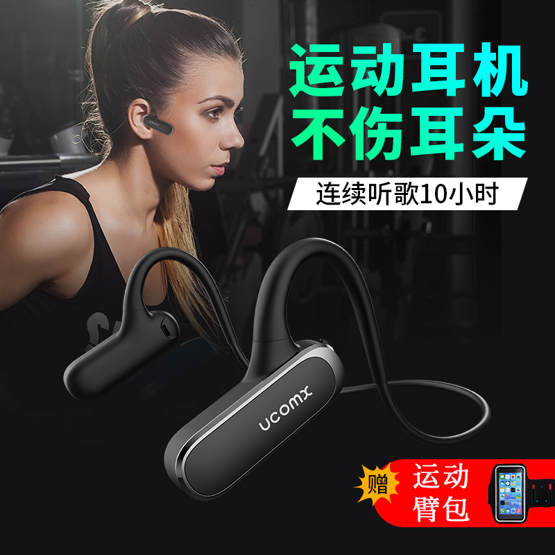 Bone conduction Bluetooth headphones not in ear wireless motion ultra-long standby hanging neck style big power with own memory card 8G