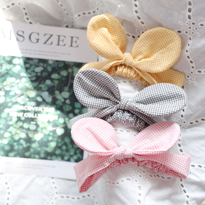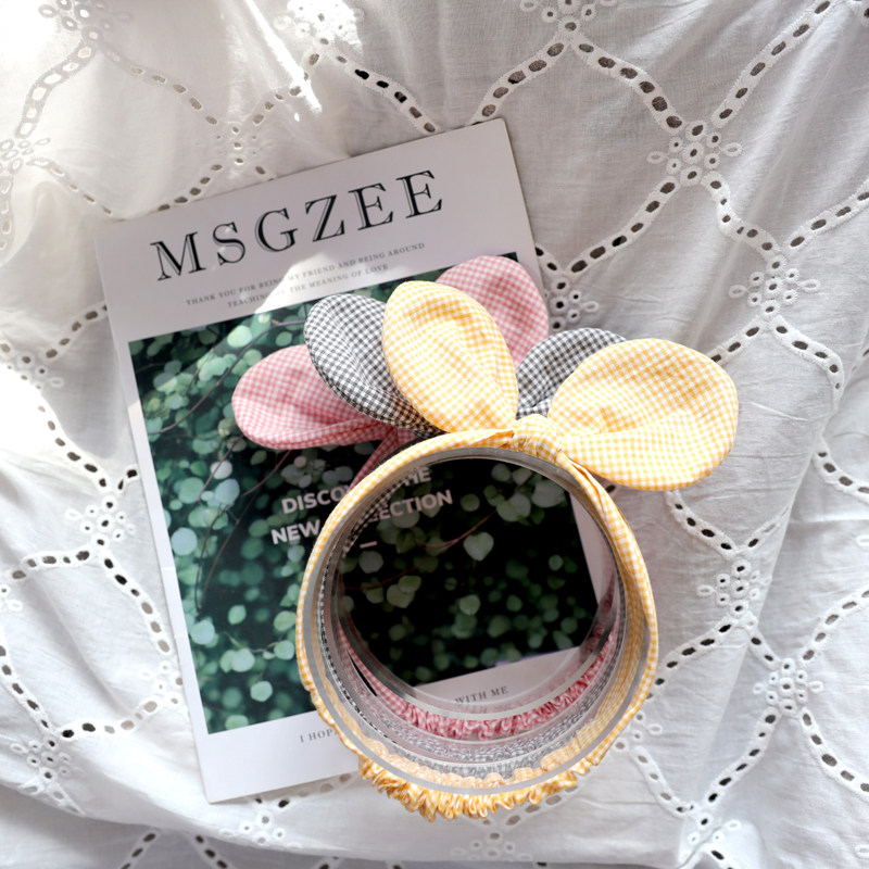 2020 spring and summer new children's hair accessories girl baby toddler hair with plaid ears cute sweet and beautiful cotton fabric headwear