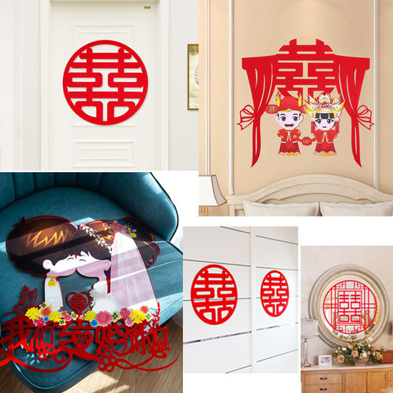 Wedding Wedding WEDDING ROOM DECORATION LIVING ROOM BEDROOM ARRANGEMENT UNWOVEN CLOTH DOOR STICKER SIZE CARTOON HAPPY WORDS WITH WINDOW FLOWER PACKAGE