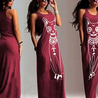 AliExpress Hot Summer cheap sale women long dress cotton cat prin