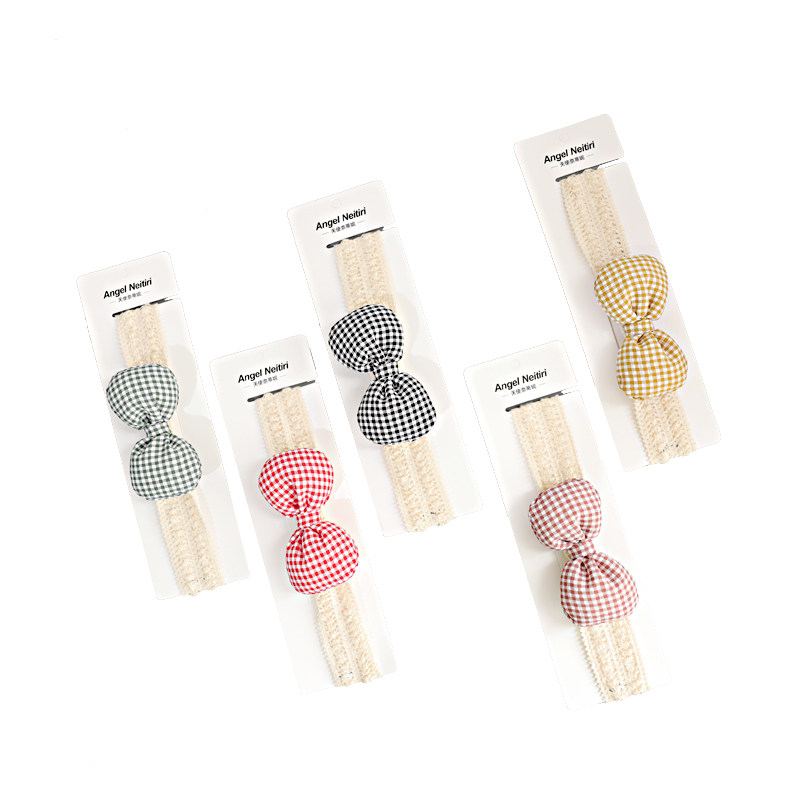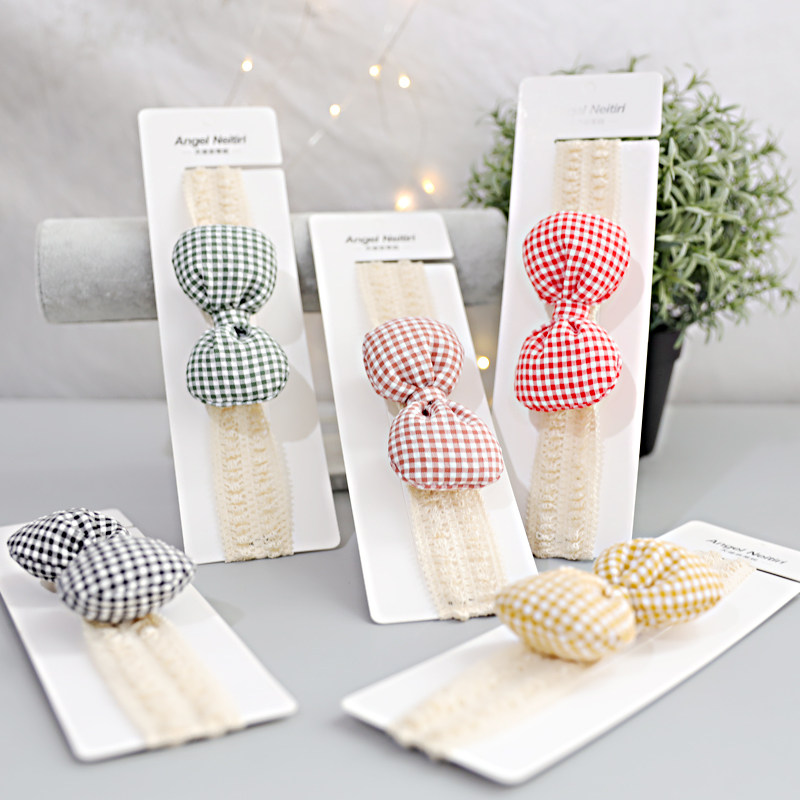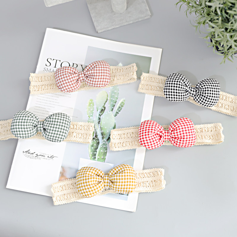 Red grid butterfly knot hair with black and white lattice butterfly knot hair with yellowwhite plaid butterfly knot hair with green white plaid butterfly knot hair with pink plaid butterfly knot hair band