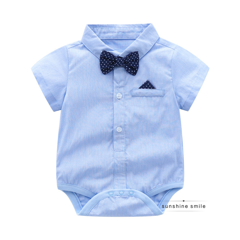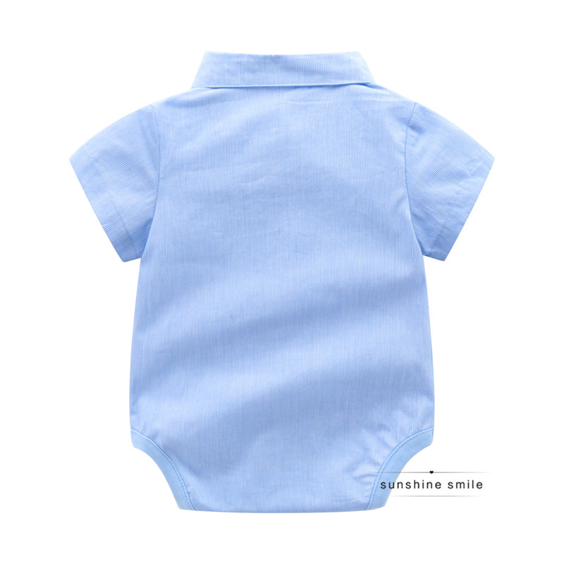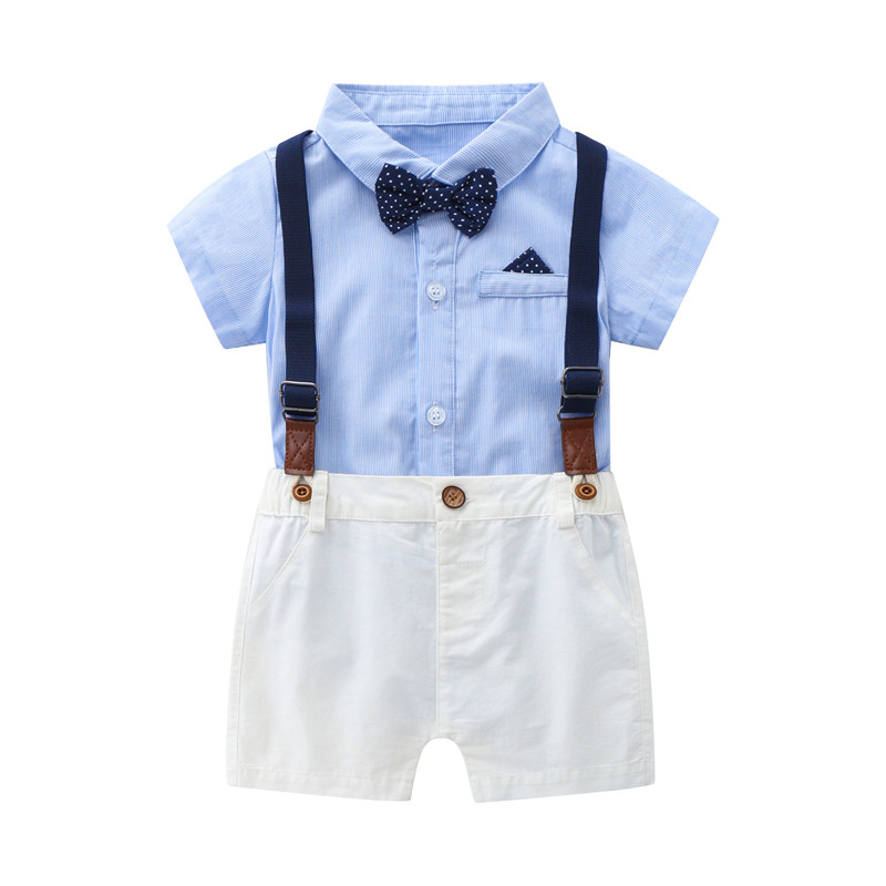 South Korea 2020 new gentleman suit male baby full moon dress striped shirt bow tie overalls summer
