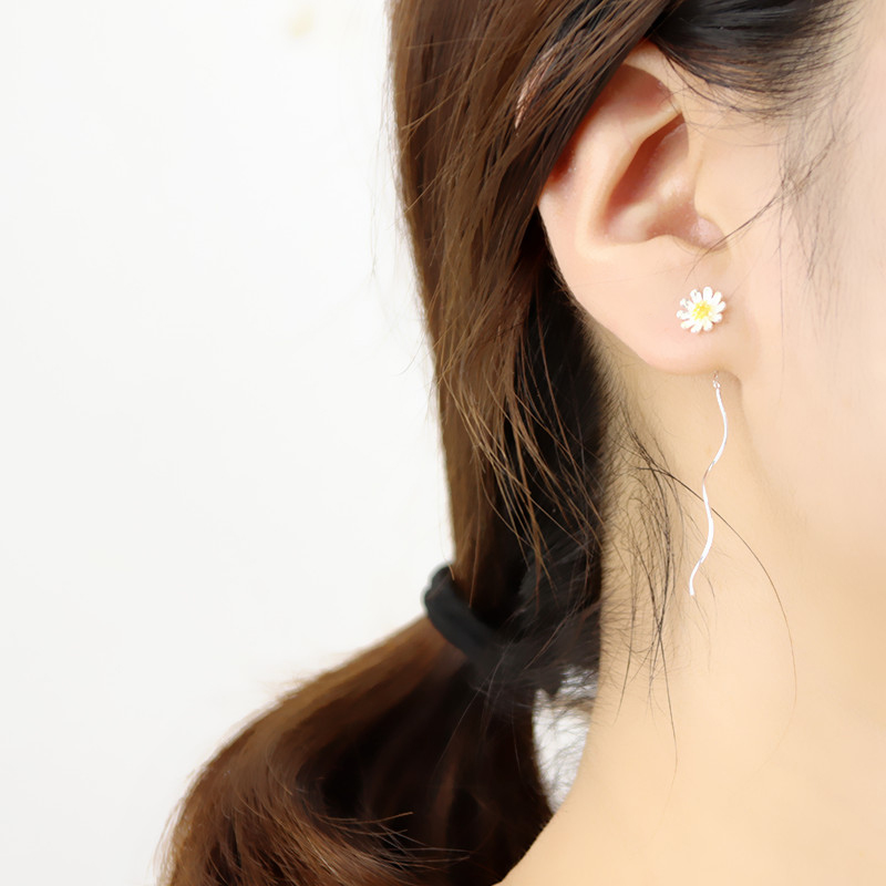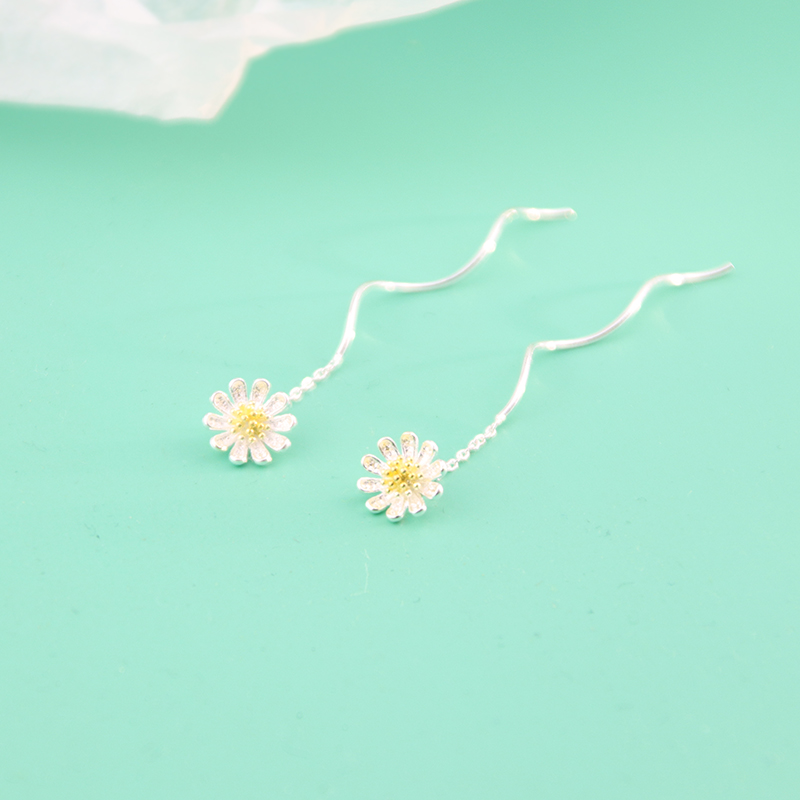 s925 Pure Silver Daisy Wavy Ear Bracelet Female Han Edition Brief Fresher Sweet and Art Mori Department Sunflower Flowers Earrings