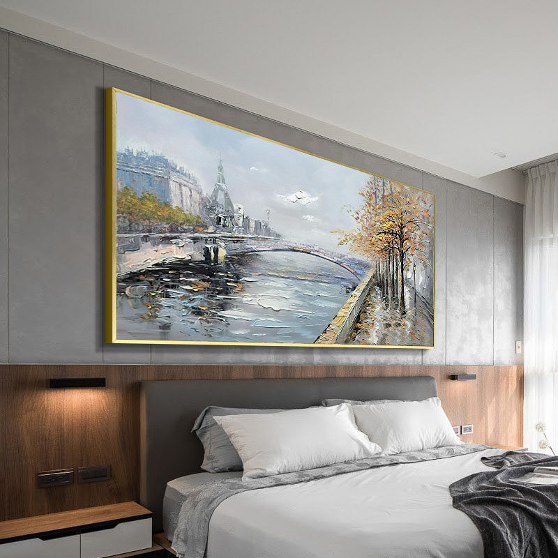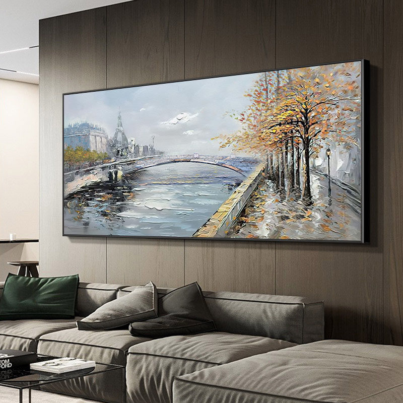 Pure hand-painted oil painting living room horizontal villa painting Nordic landscape mural sofa background wall decoration painting birch forest