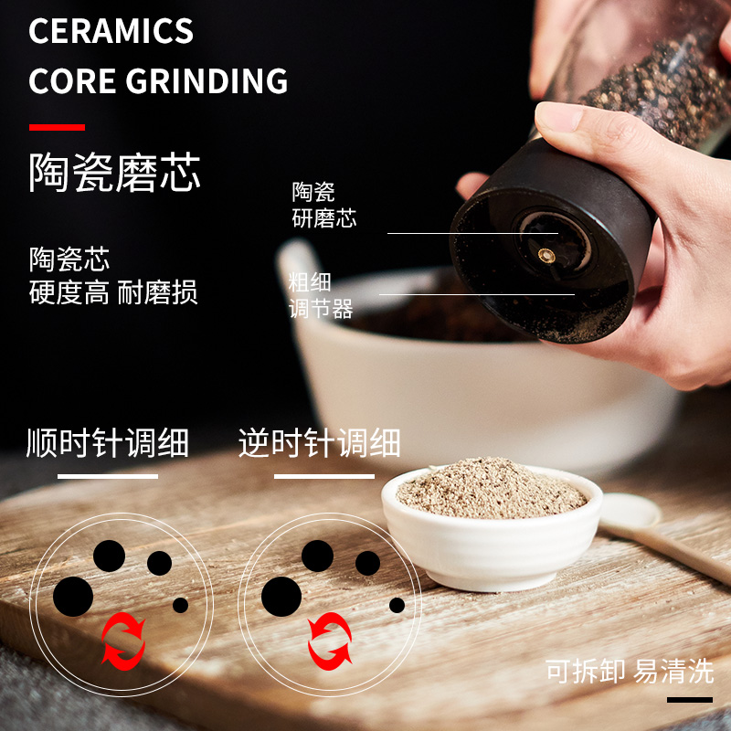 Hand twist with black pepper grinder Black pepper powder Black pepper pepper seasoning White household noodles steak