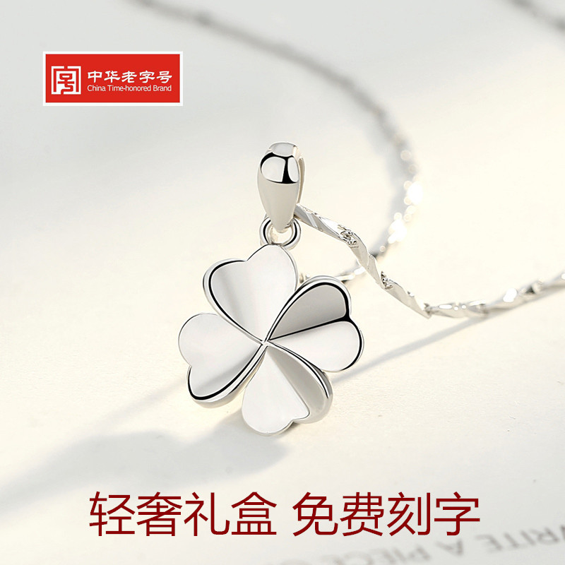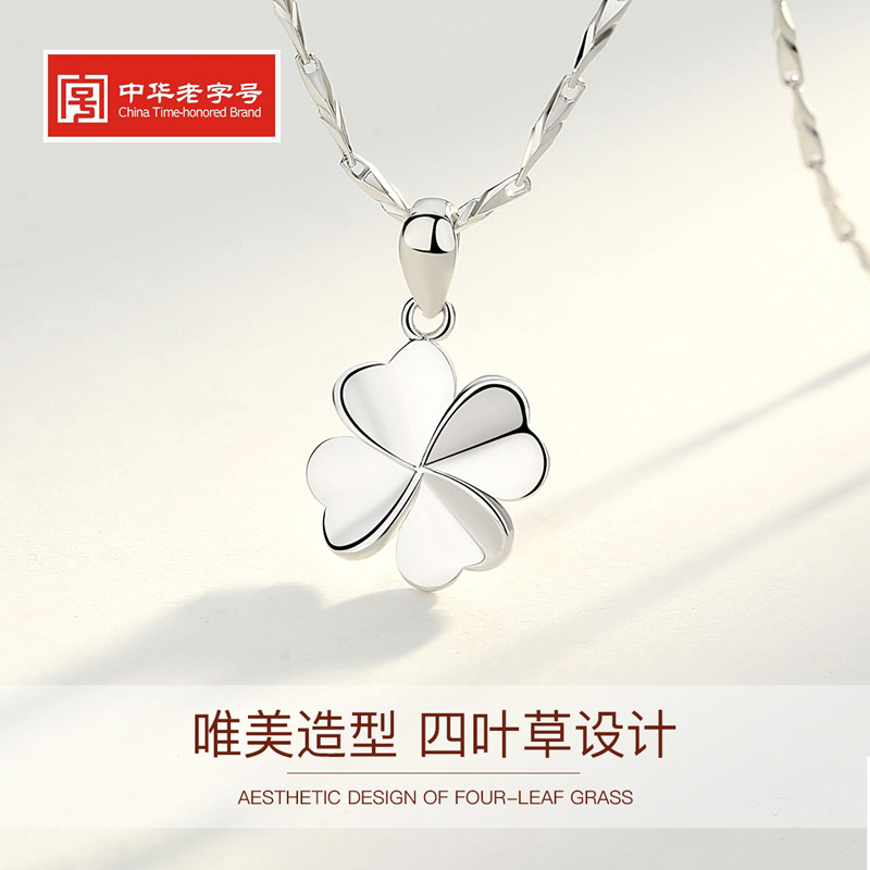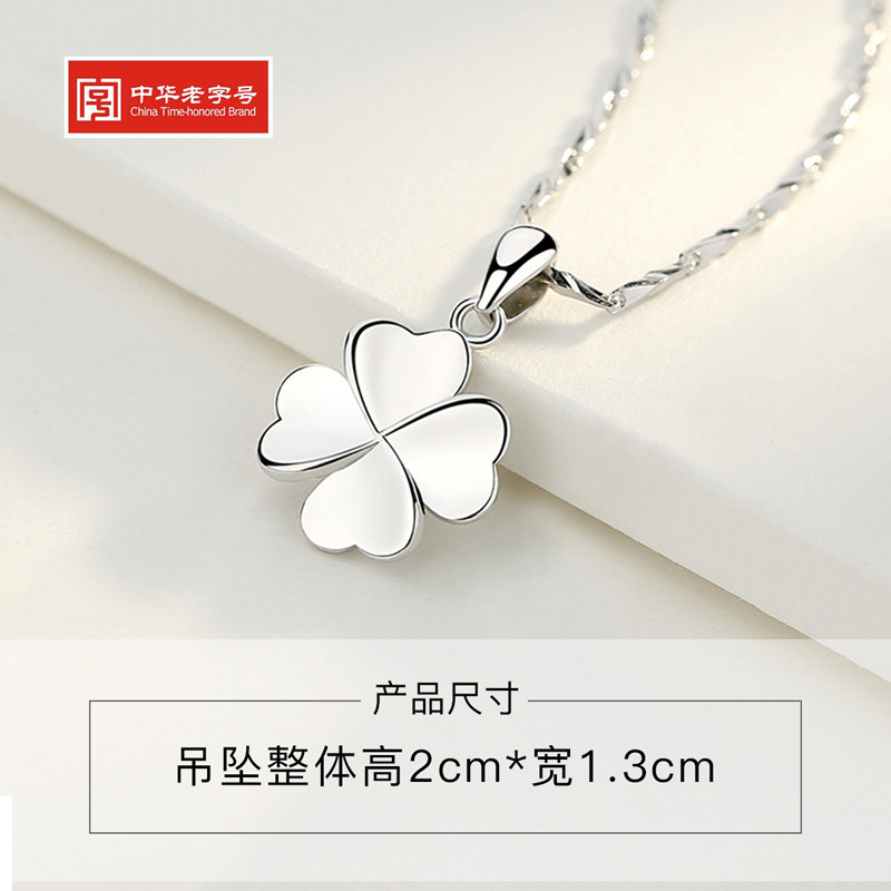 Lao Fengxiang and Pt950 platinum necklace female platinum choker Clover pendant girlfriend birthday gift