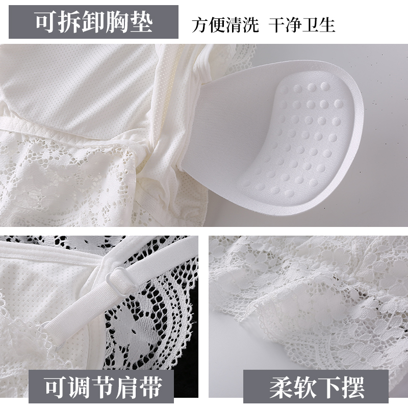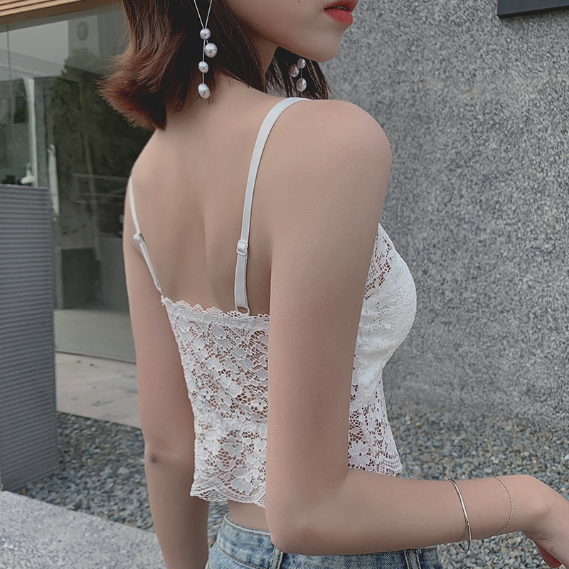 Lace Beauty Back Small Harnesses Vest Lady Inner Lap Net Red Burst with chest cushion Bottom Smear Underwear Anti-Walking Light Wrap Breast