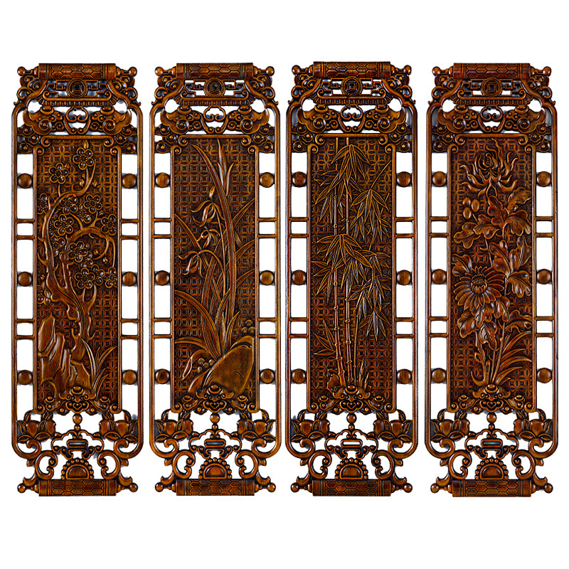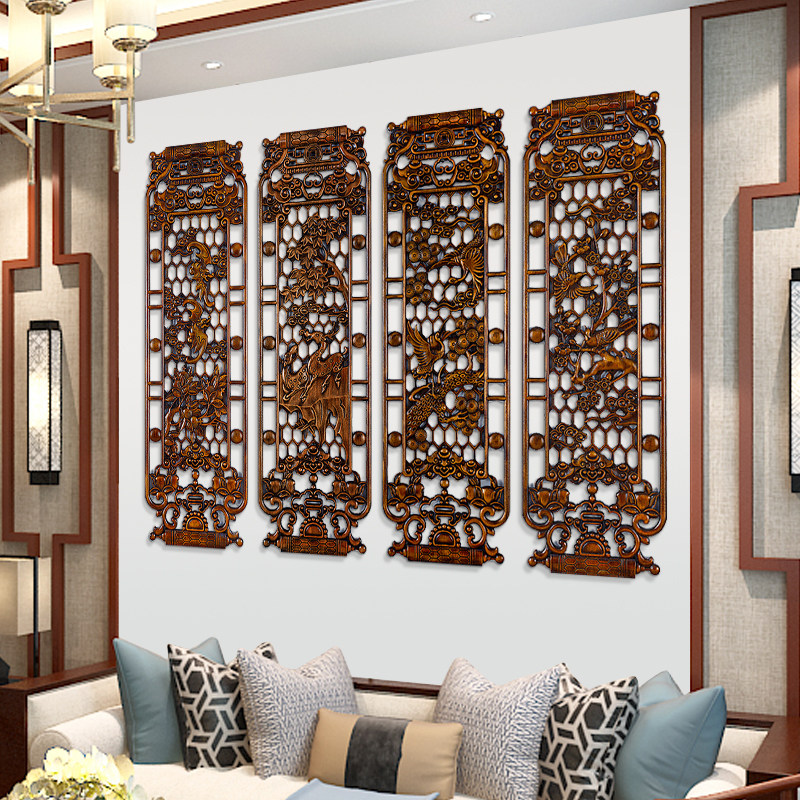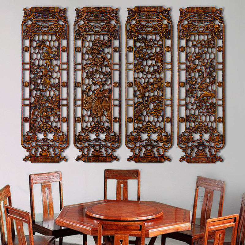 Dongyang wood carving pendant strip screen Chinese style solid wood living room ancient style porch wall hanging retro carved antique decorative painting - Taobao