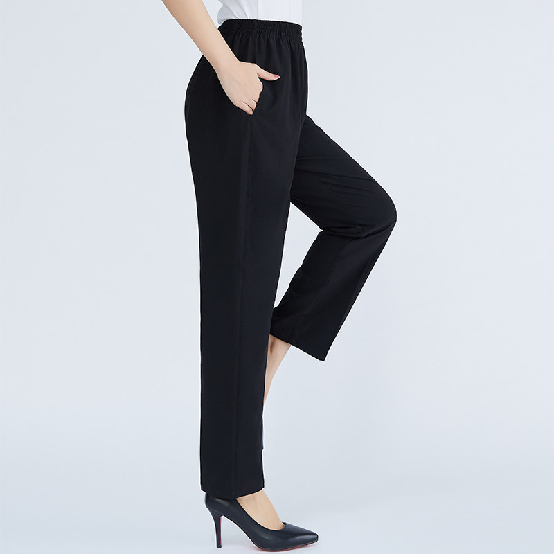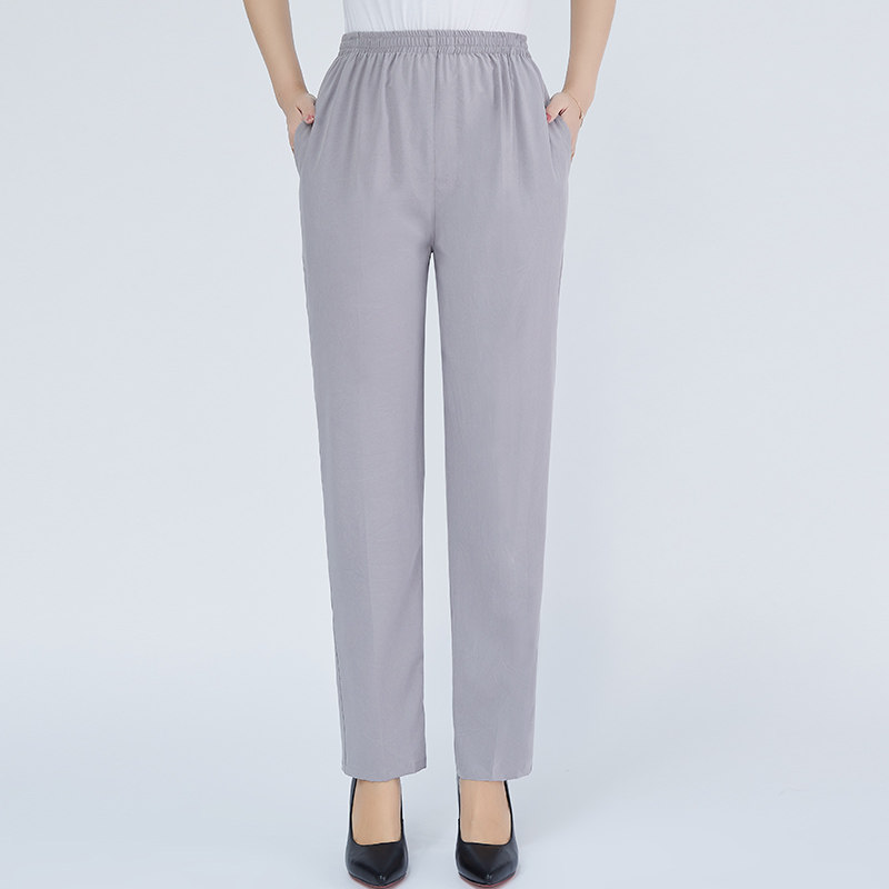 Summer thin mulberry silk middle-aged and elderly women's pants mom silk pants elastic high-waisted straight casual pants women's trousers