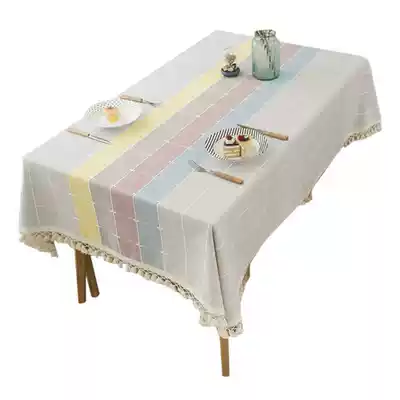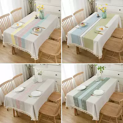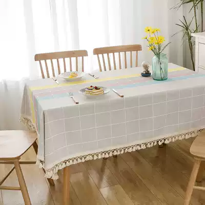 Tablecloth fabric cotton and linen small fresh modern simple Nordic ins net red thick plaid striped large tassel tablecloth