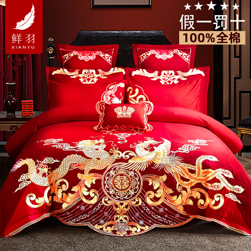Feast of the feast forever and the whole life of the festival Van Mii Garden than wings newly married Bang Dragon Xiufeng Tianqiu and Crown Crown Red Makeup ten miles of red makeup heart printed Longfeng