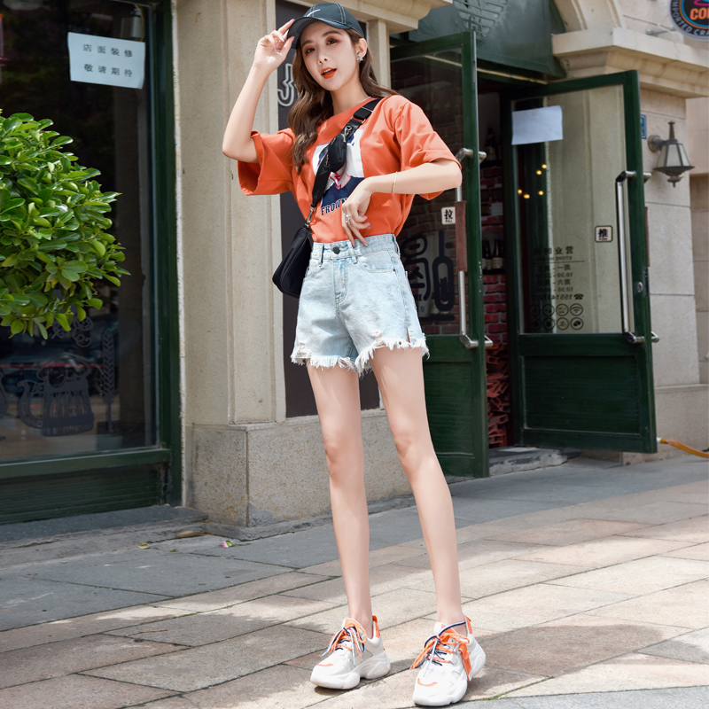 White denim shorts women's summer high-waisted thin and loose wear 2021 new thin wide-leg black hot pants trend