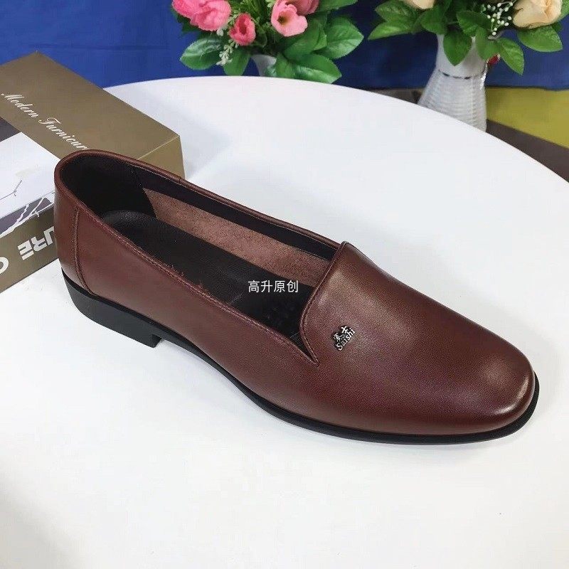 Summer Shallow Stomp Shoes Men Genuine Leather 2022 New Bull Leather Men's Shoes Soft Bottom Low Bunch Men Business Positive Dress Short Face Leather Shoes