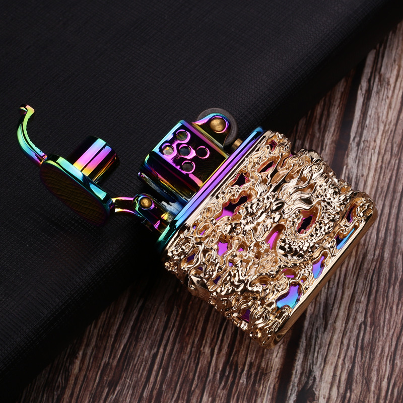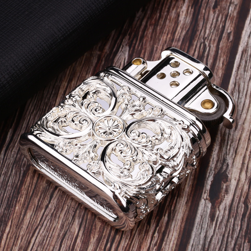 Personality Kerosene Lighter Pure Copper Windproof Retro Creativity Hollowed-out Comeback Nine Doors 520 Send Boyfriend Gift
