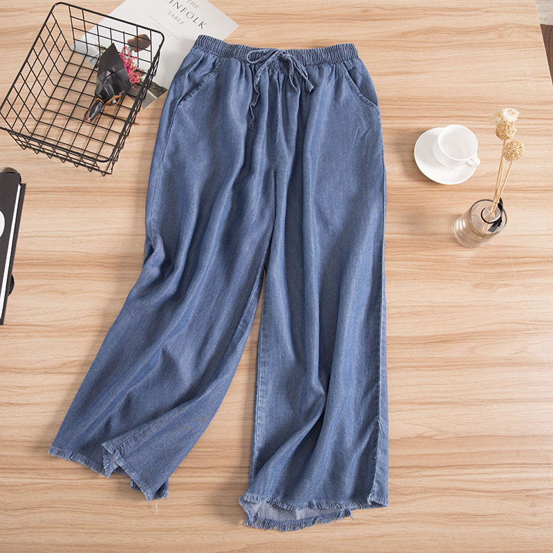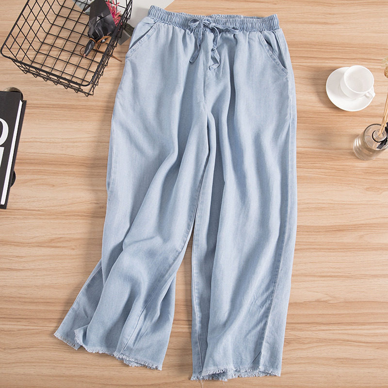 Sky Silk Jeans Women's Summer Thin style long pants Han Fan Hart thin casual tightness tightness waistline 90% Harun pants woman