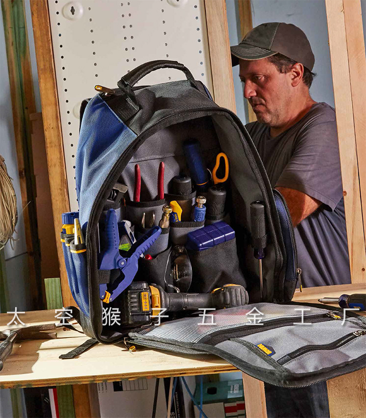 Irwin irwin thickened large capacity waterproof abrasion resistant tool portable double shoulder backpack containing space monkey tool-Taobao
