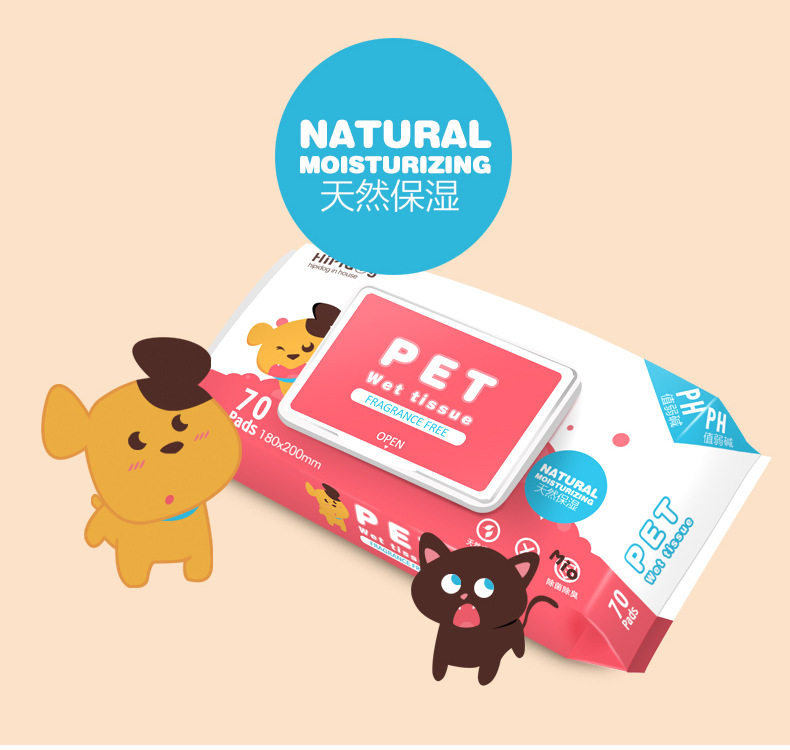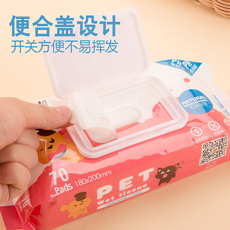 Pets special wet towels kittens dogs go to tears wiping tears clean and sanitized and deodorized damp paper towels 70 pieces