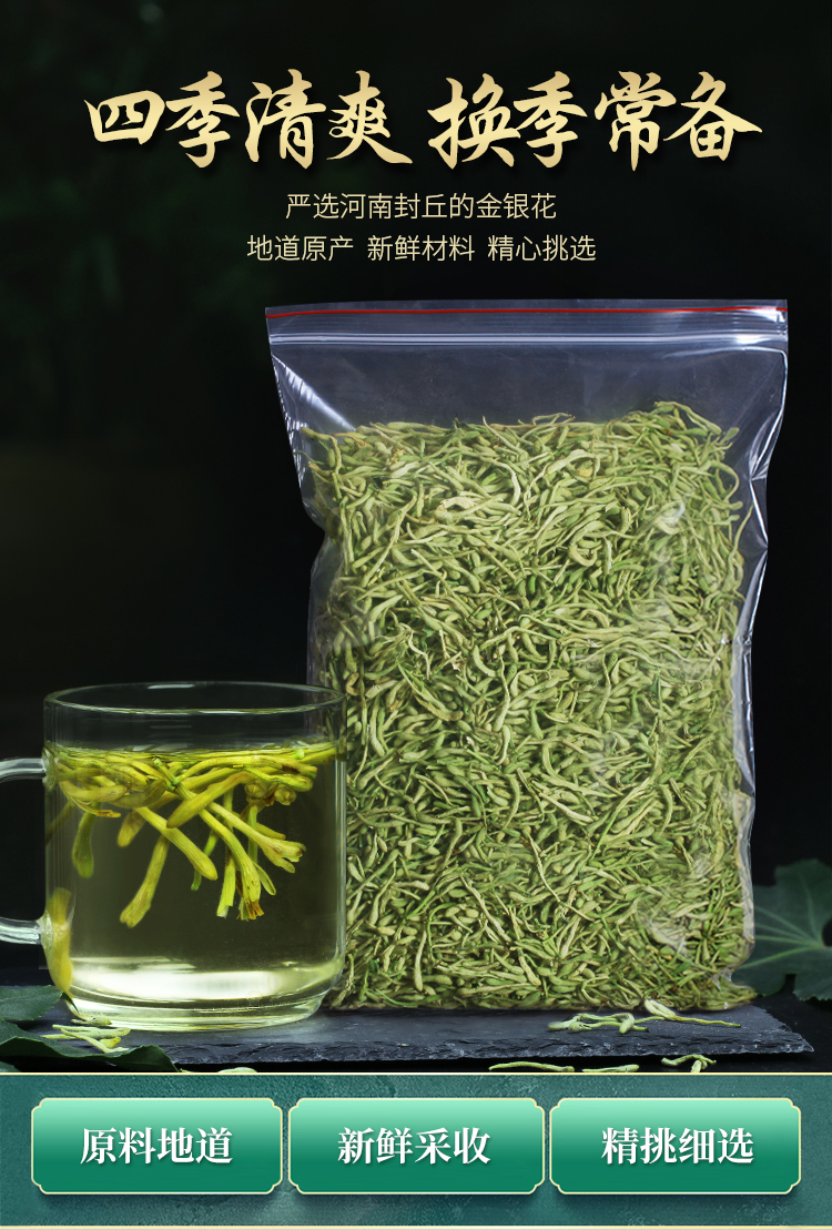 Honeysuckle tea natural bulk seal hill dry flowers and chrysanthemum tea brewed herbal tea official flagship store without clear fire