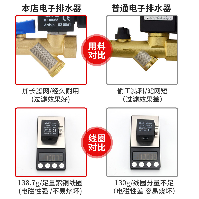 Automatic drain PB68 PA Pneumatic small air compressor gas tank AD402 ball valve Electronic drain valve
