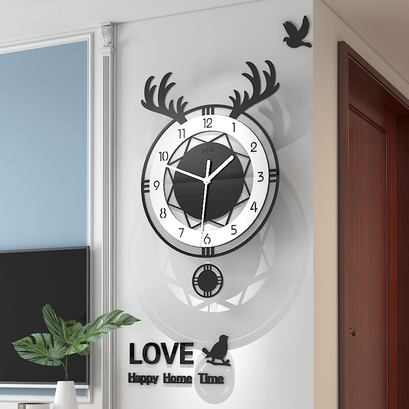 Nordic deer head clock wall clock living room silent fashion atmosphere creative home watch modern art simple quartz clock