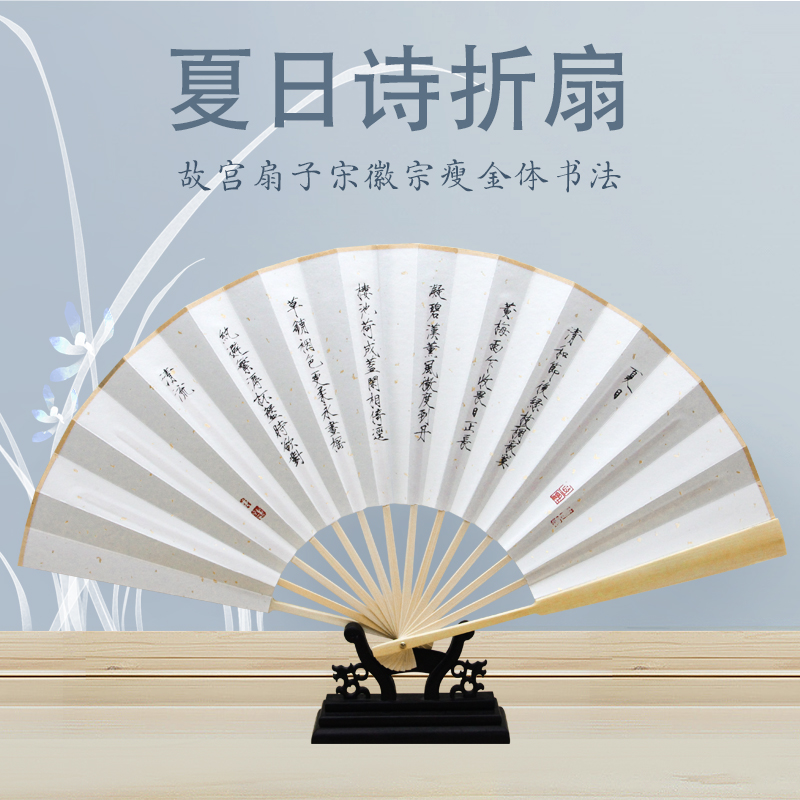 The Forbidden City's Folding Fan Song Emblem of the Song Thin Gold Body Calligraphy Summer Fan Poetry Xuan Paper Folding Fan China Windy Windy Gift
