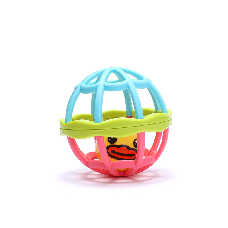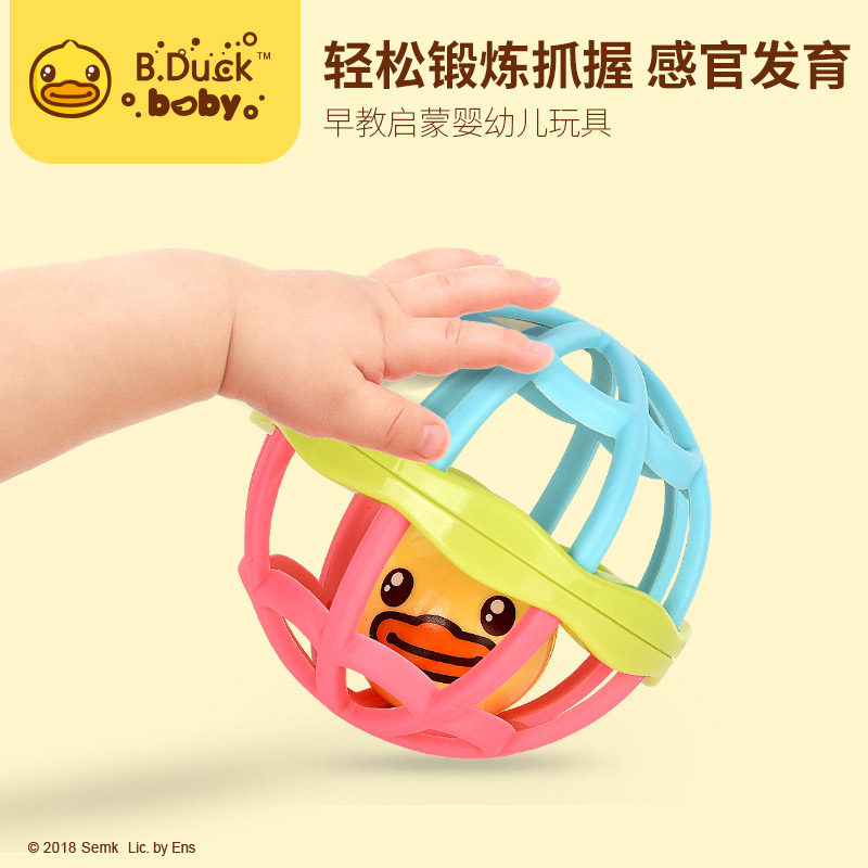 B Duck Hong Kong Little Yellow Duck Baby Early Education Educational Toys Children's Hand Grab the Ball Baby Silicone Bell Bell Hole Ball