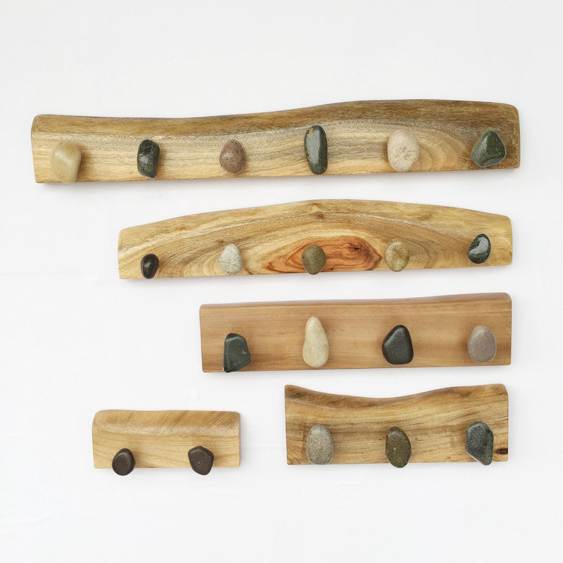 Cobblestone hook creative solid wood wall hanging hook Wall mounted coat rack Bedroom living room coat hook decoration