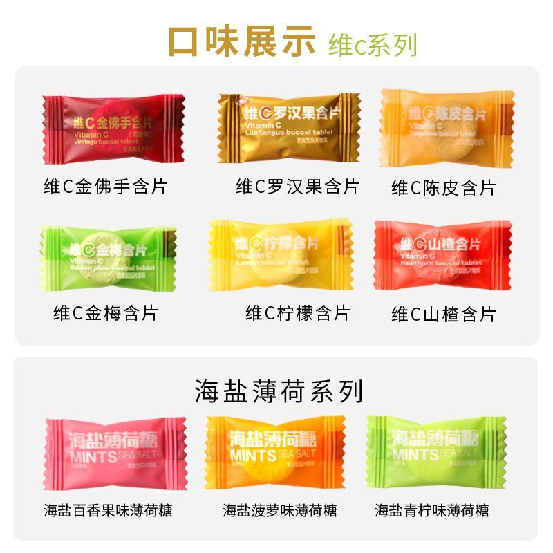 Version 3 Sea Salt Passion Fruit Candy 5 catties Version 3 Sea Salt Lime Mint Candy 5 catties Version 3 Sea Salt Pineapple Mint 5 catties Version 1 Net Red Vitamin C Chenpi Lozenges 5 catties Version 3 Net Red Vitamin C Jinmei Contains