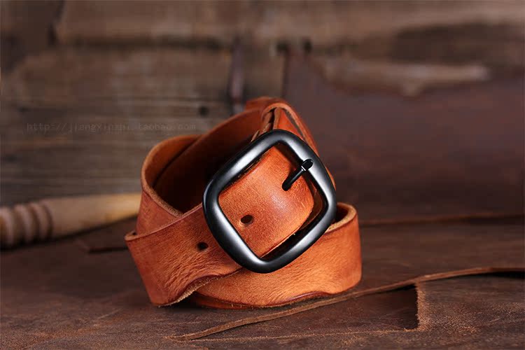 New retro old top layer cowhide folded ladies belt top layer crazy horse leather men's leather belt S009