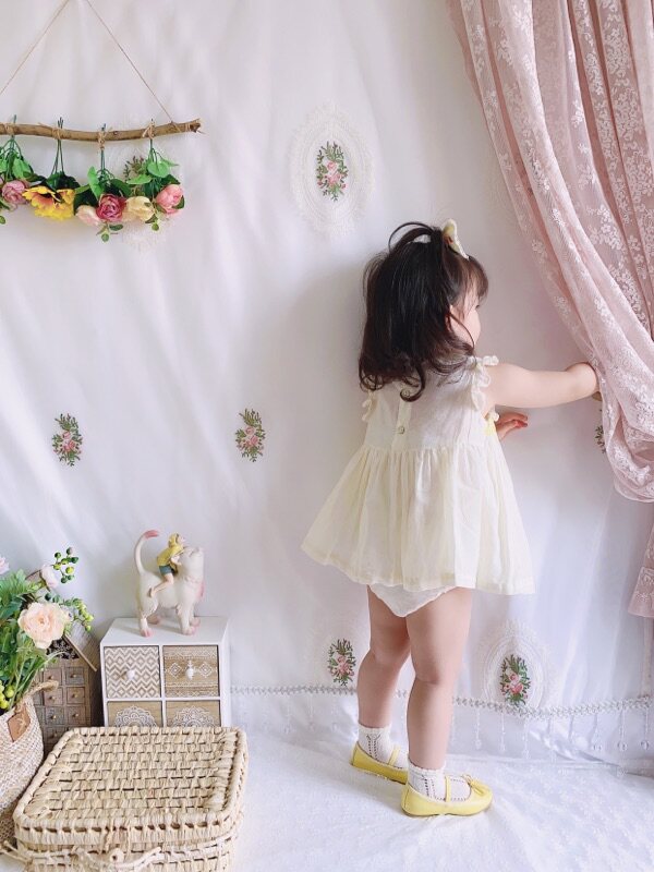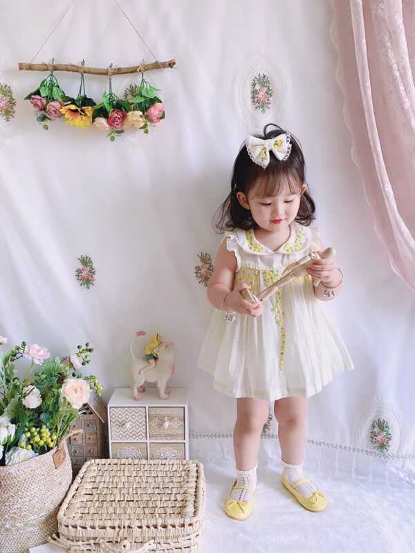 Meat Polo Home Pure Handmade Embroidered Little Yellow Flower Everyday Dress