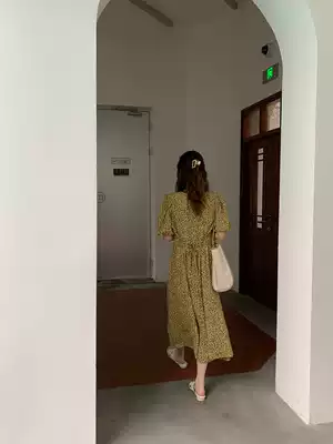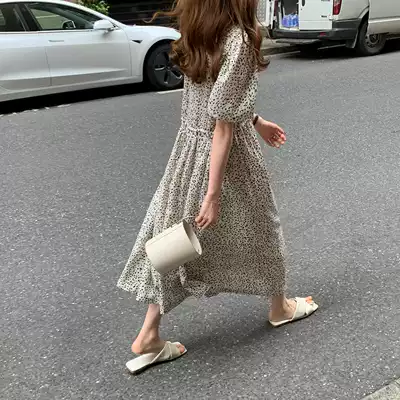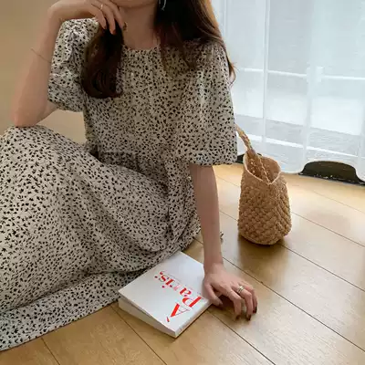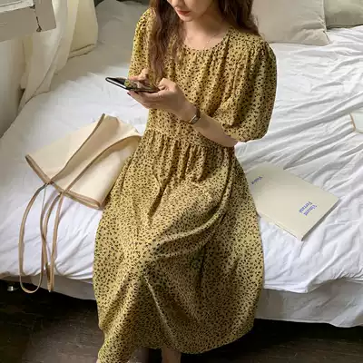 (10% off for a limited time) Age-reducing girl sense bubble sleeve pleated floral long Version Dress F0501