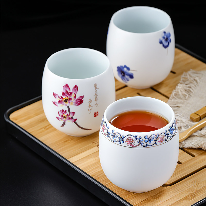 Kung Fu Tea Cup Ceramic Master's Cup Single Cup Water Glass Wine Tasting Cups Waist Drum Cups Small Cups Office Tea Tea Tea Cup