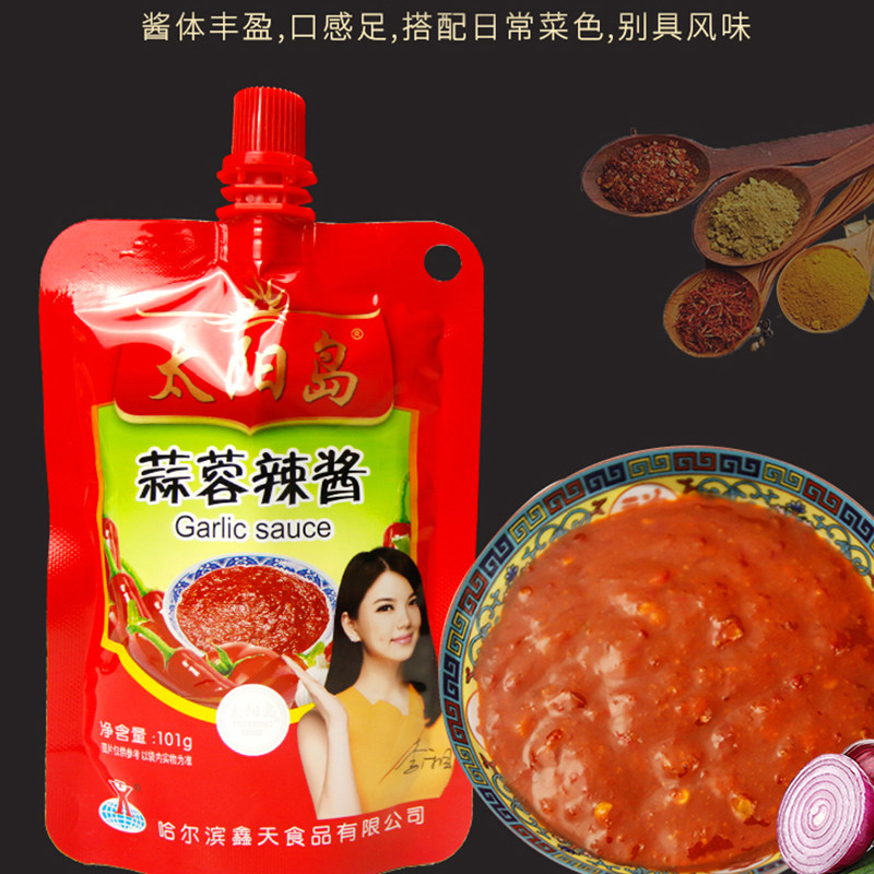 Sun Island Garlic Paste Hot Sauce 101g Northeast scallion Pizza Chili Sauce Pancakes Jam fruit Roasted Cold Noodle Barbecue Sauce Sauce