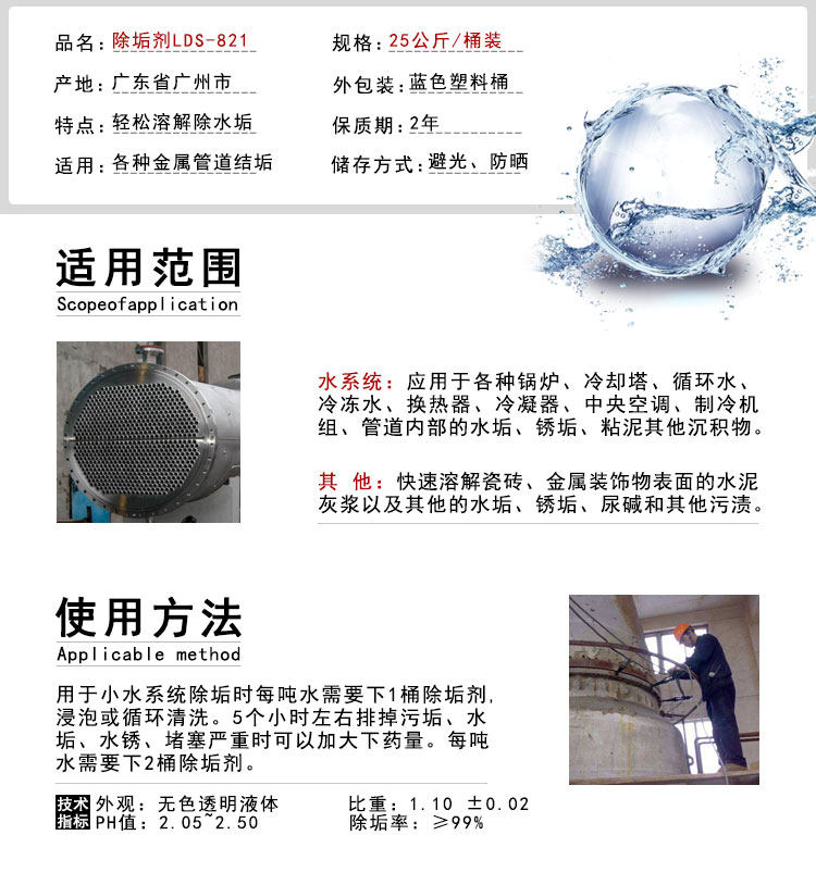 Lantis LDS-821 Descaling Agent Central Air Conditioning Piping Boiler Water Scale Scavenger Powerful de-cleanser