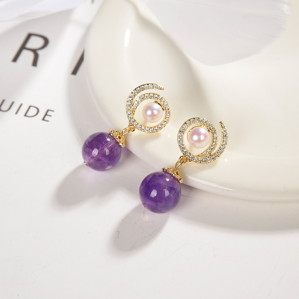 Lifetime One-stone Pearl Earrings Girl Purple Crystal Earrings Small Crowddesign High 2022 New Silver Ear Pin