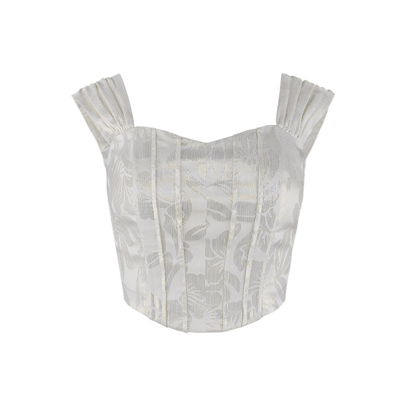 XIAOLI real silk metal color weave jacquard white inner hitch sleeveless small harnesses vest short blouses female summer outwear