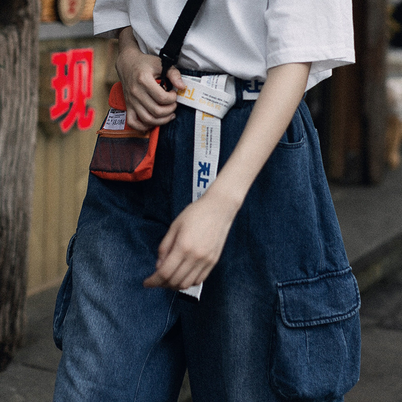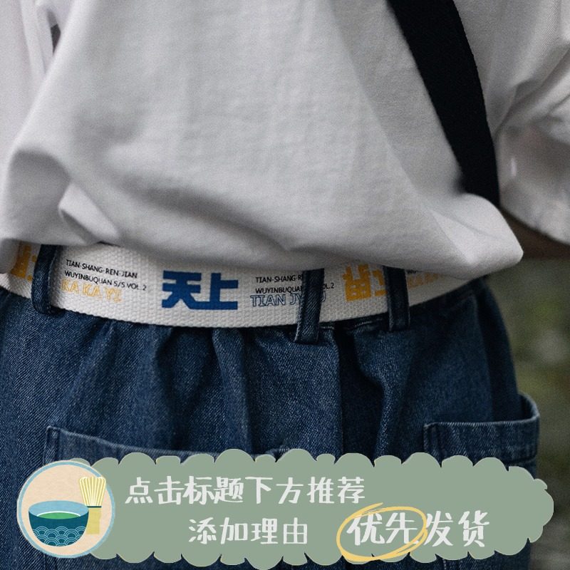 Five-tone incomplete retro tide brand Japanese print men and women couples white canvas belt student all-match belt
