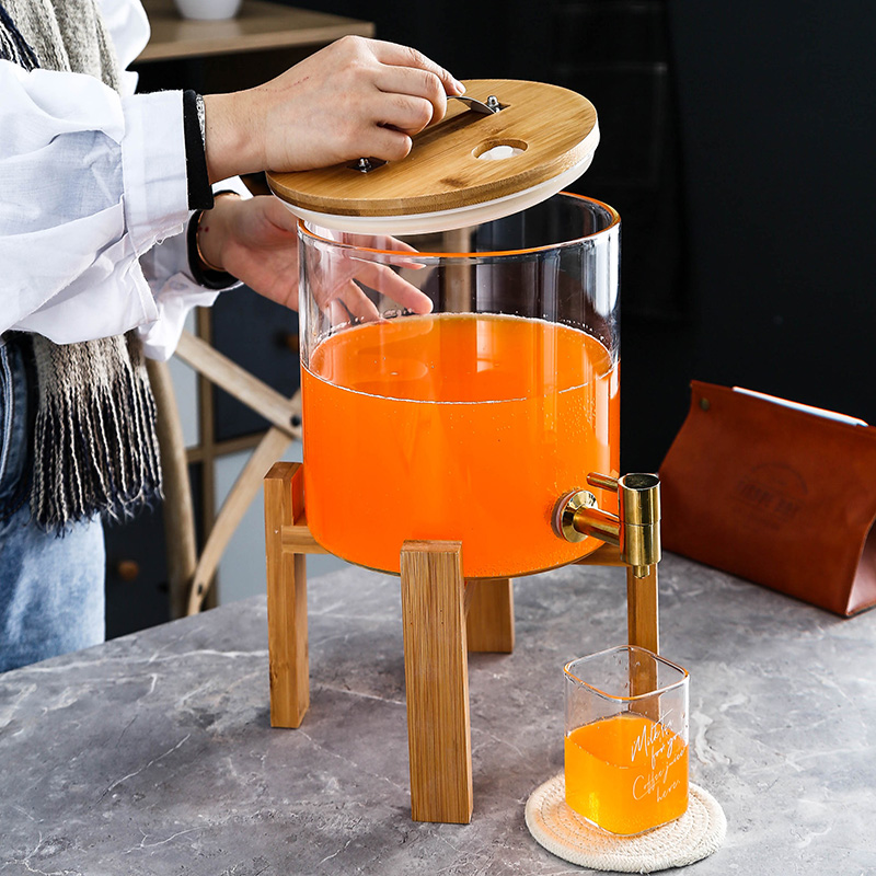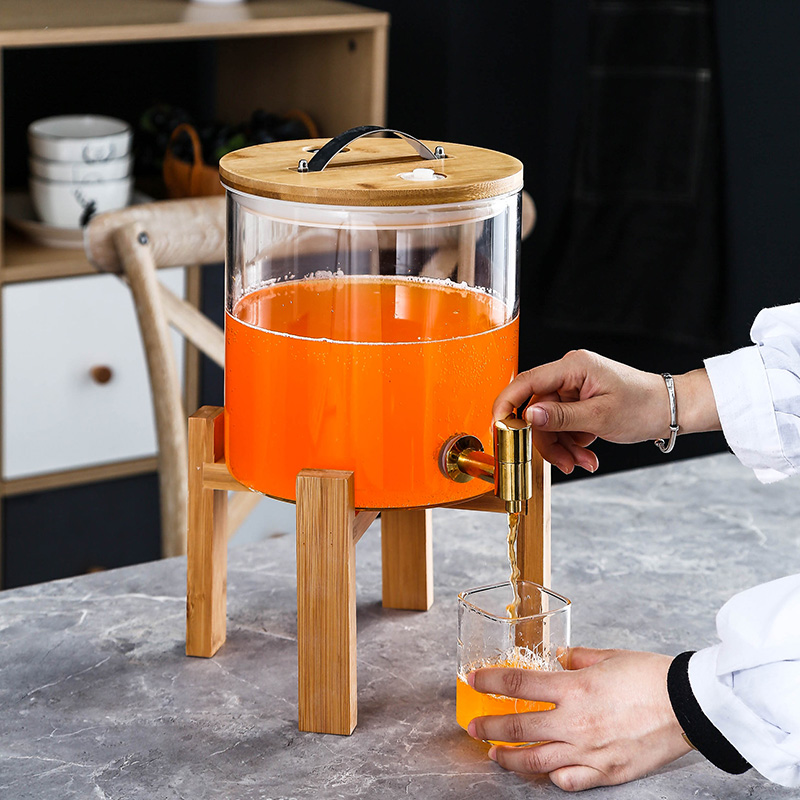 Glass juice bucket with faucet creative cold water bottle bubble wine can special large capacity beverage bucket wine bottle
