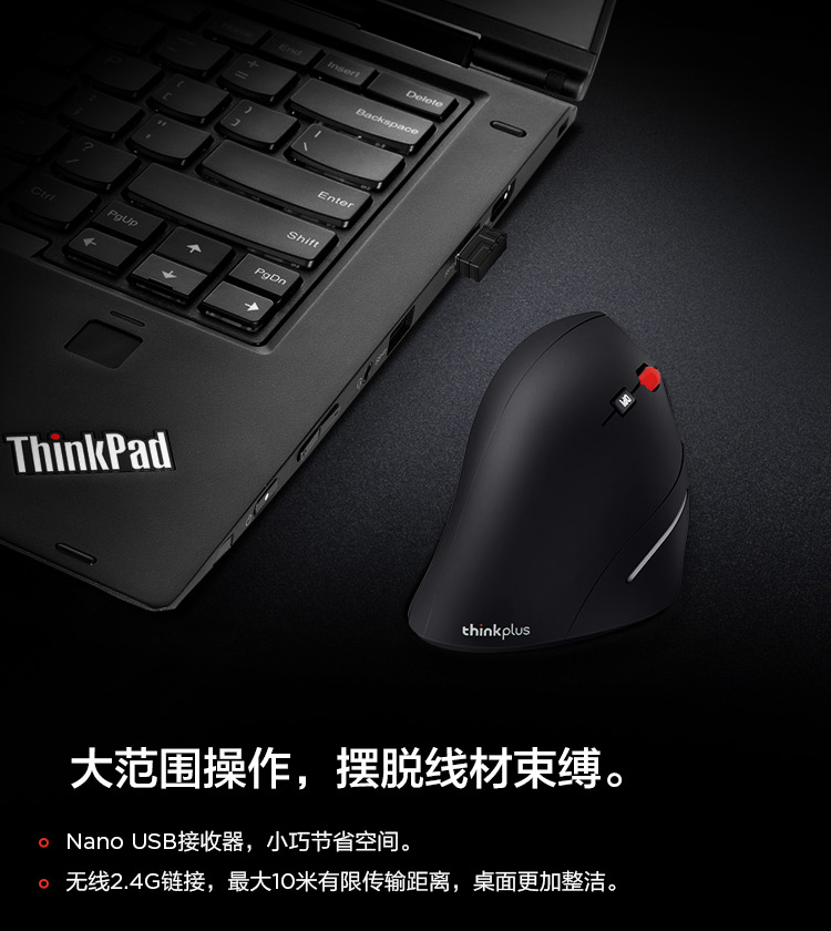 Lenovo Thinkplus Wireless Mouse Vertical Handheld Side Grip Vertical USB Wireless Mouse Ergonomics