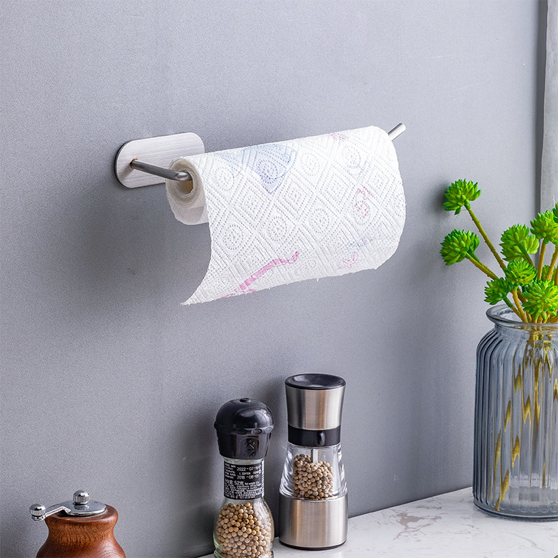 304 stainless steel kitchen paper towel holder plastic wrap holder no punching toilet wall hanging towel roll paper hanging hand paper holder