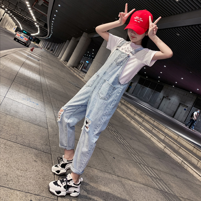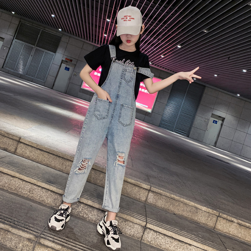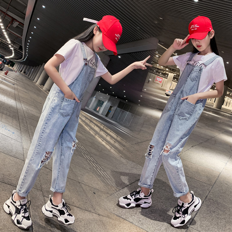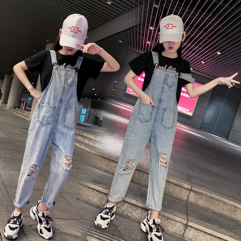 Girl Nets Red Suit Summer Dress Foreign Pie Big Child Bull Pants Cuddling Pants Tide Cards Tide 13-year-old girl Two sets