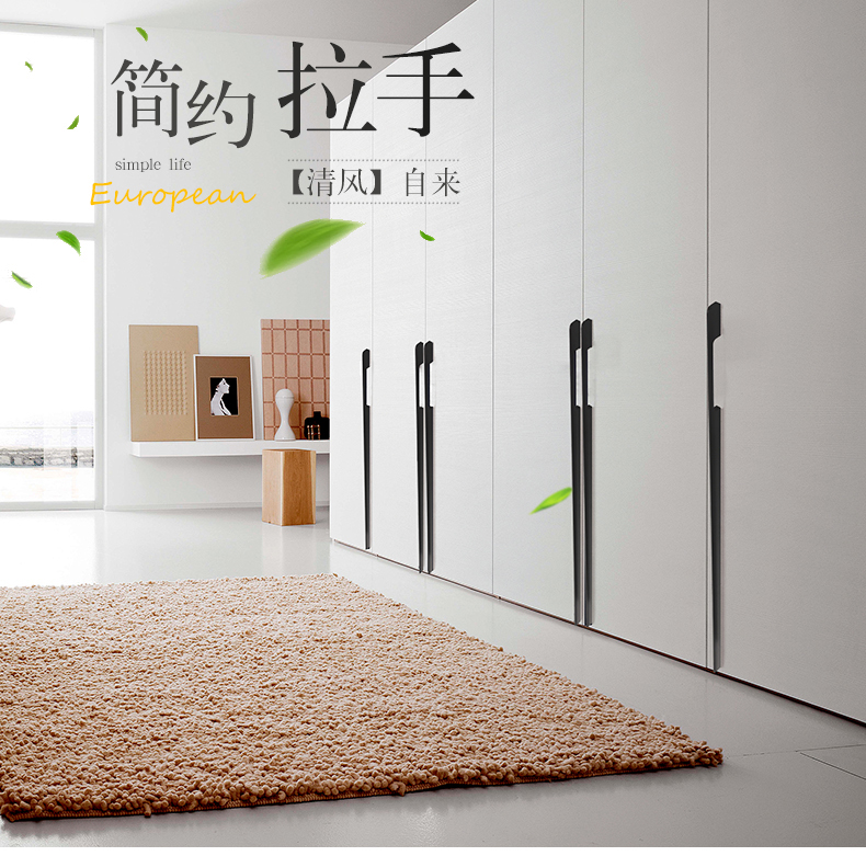 Pasify cabinet door handle modern simple high-end wardrobe light luxury European style door handle black cabinet drawer handle