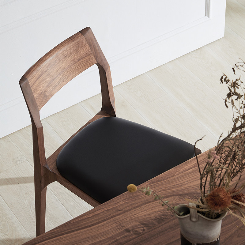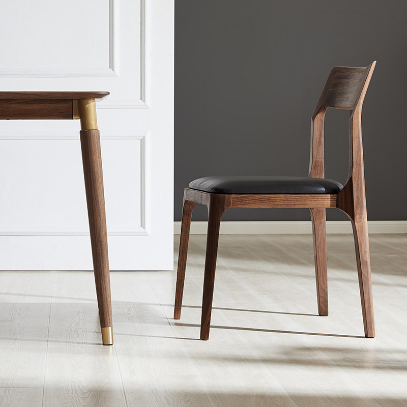 American black walnut dining chair backrest solid leisure very simple light luxury desk modern European leather log comfortable